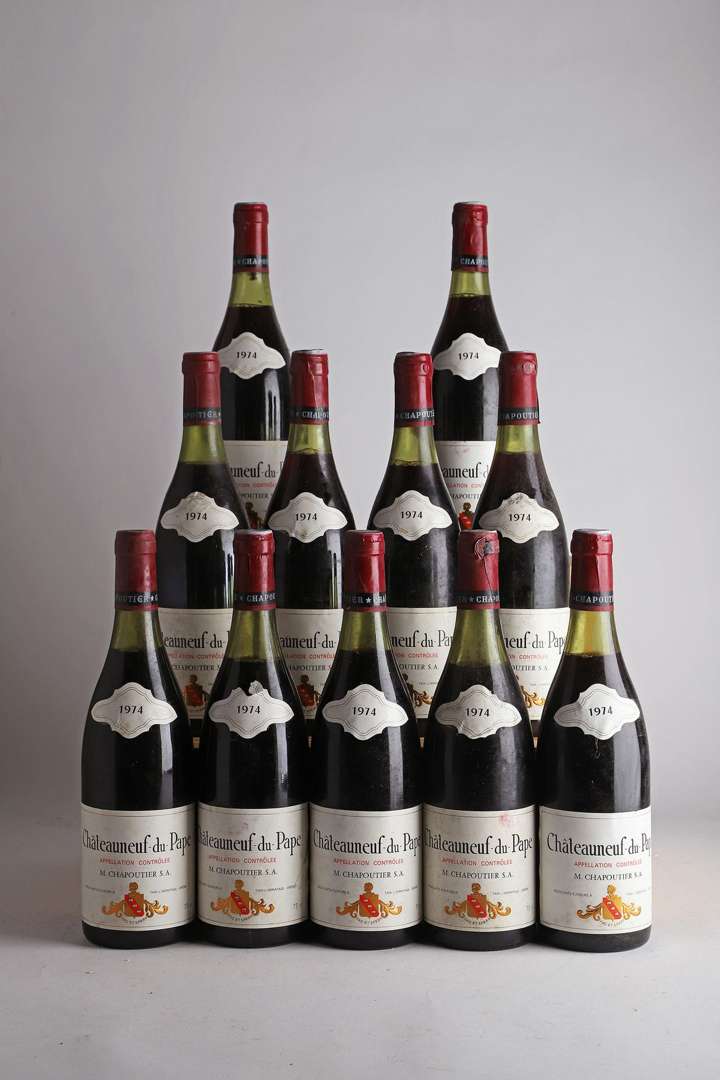 11 B CHÂTEAUNEUF DU PAPE Rouge (2 à 2,7| 2 à 2,8| 2 à 3| 1 à 3,5 et 1 à 4 cm| 6 e.t.h. légères| 2 clm.a| 1 c.a.) - 1974 - Chapoutier