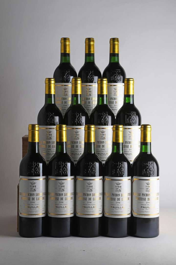12 B CHÂTEAU PICHON COMTESSE DE LALANDE (Caisse Bois d'origine)(8 B.G. et 1 T.L.B.+) - 1990 - GCC2 Pauillac