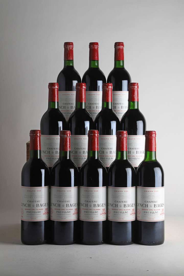 12 B CHATEAU LYNCH BAGES (Caisse Bois d'origine) (4 B.G| 1 B.G.- et 1 T.L.B.-| c.s. légères) - 1988 - GCC5 Pauillac