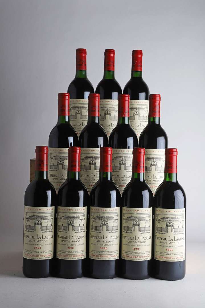 12 B CHÂTEAU LA LAGUNE (Caisse Bois d'origine) (3 B.G| 2 T.L.B.+ et 2 T.L.B.) - 1990 - GCC3 Haut-Médoc
