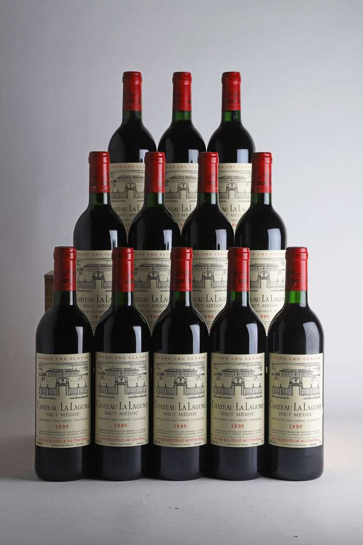 12 B CHÂTEAU LA LAGUNE (Caisse Bois d'origine) (3 B.G| 1 T.L.B.+) - 1990 - GCC3 Haut-Médoc