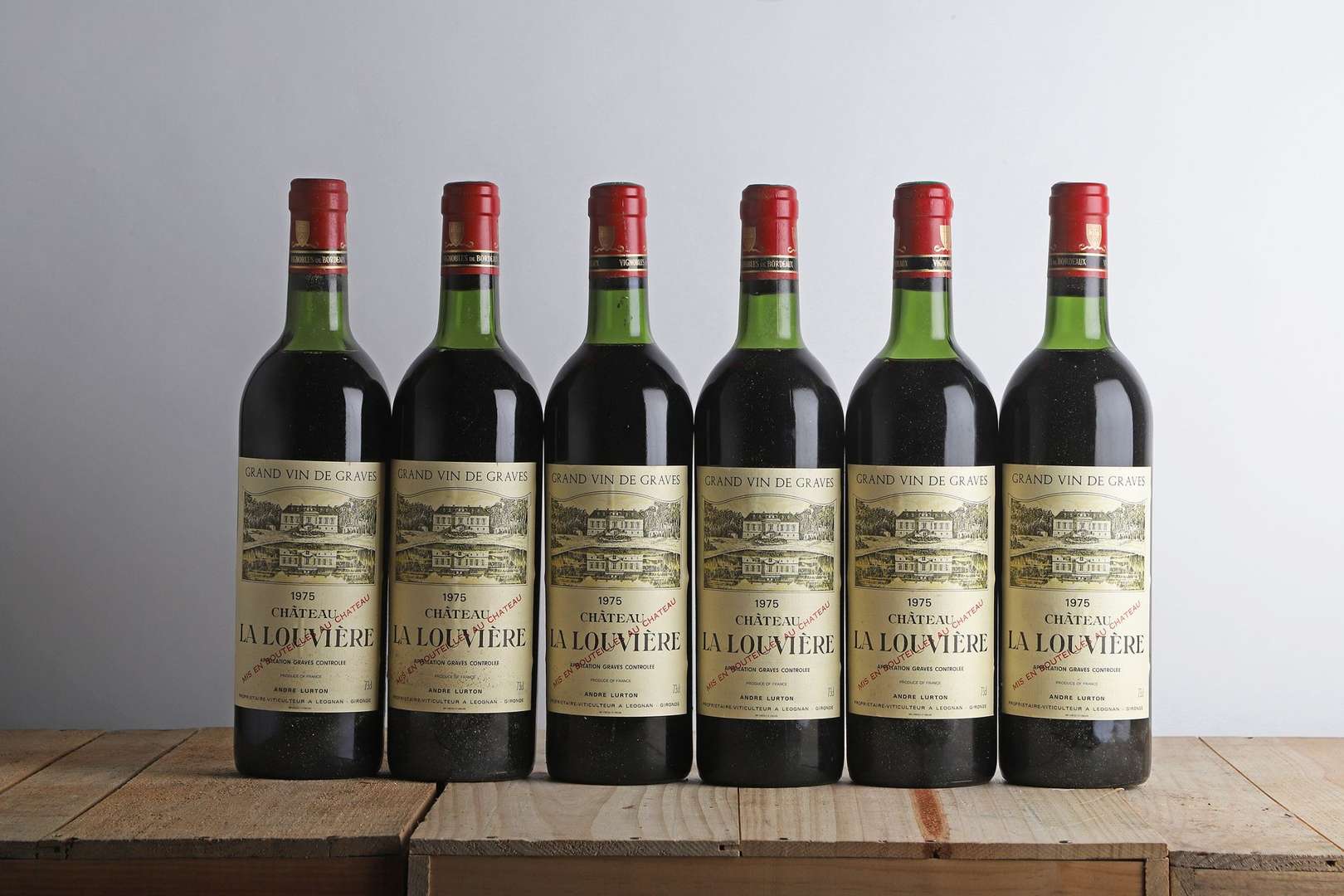 6 B CHÂTEAU LA LOUVIÈRE Rouge (Caisse Bois d'origine) (1 T.L.B| 3 H.E.+ et 2 H.E.) - 1975 - Pessac-Léognan