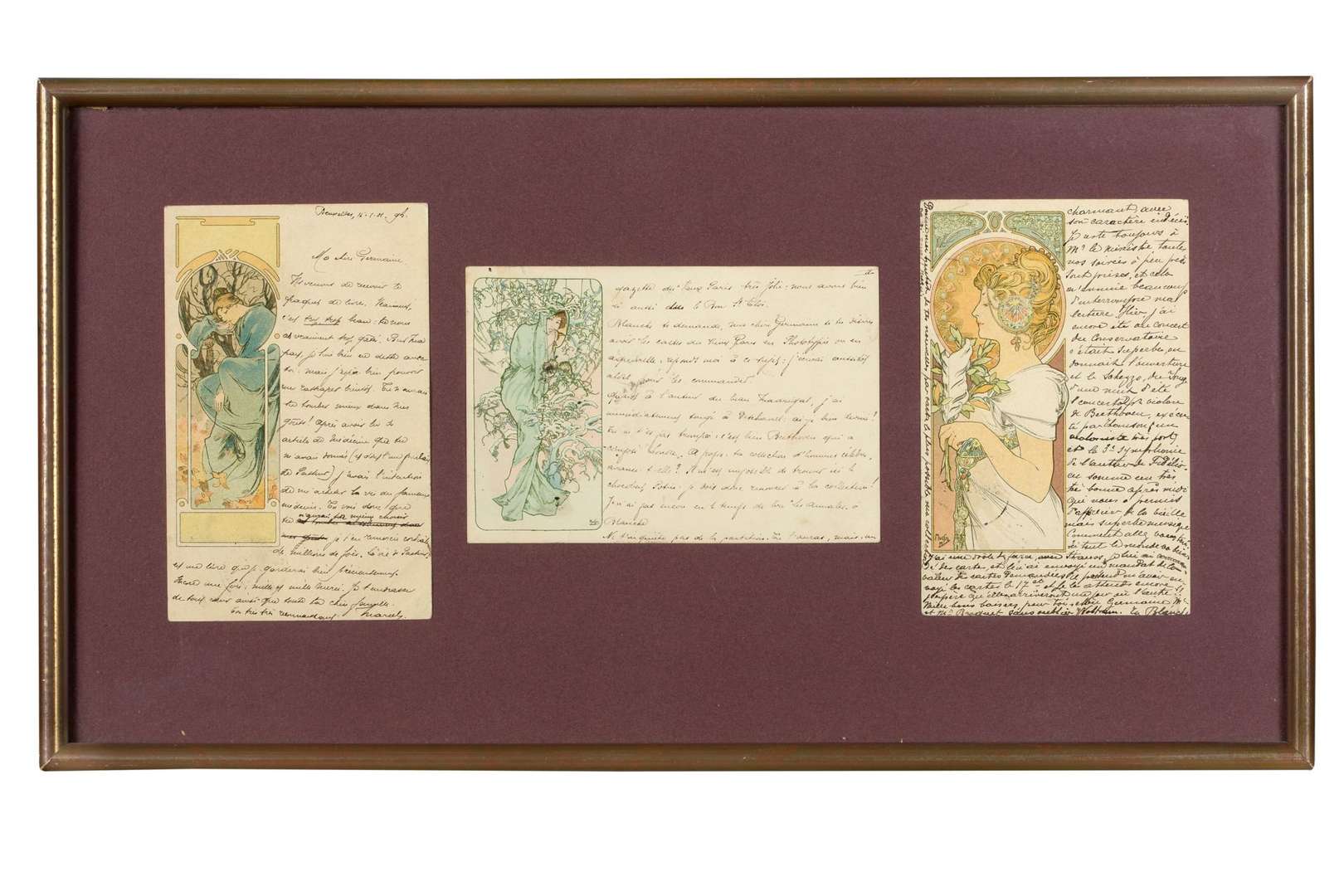 Trois cartes postales illustrées de sujets d'Alphonse Mucha
