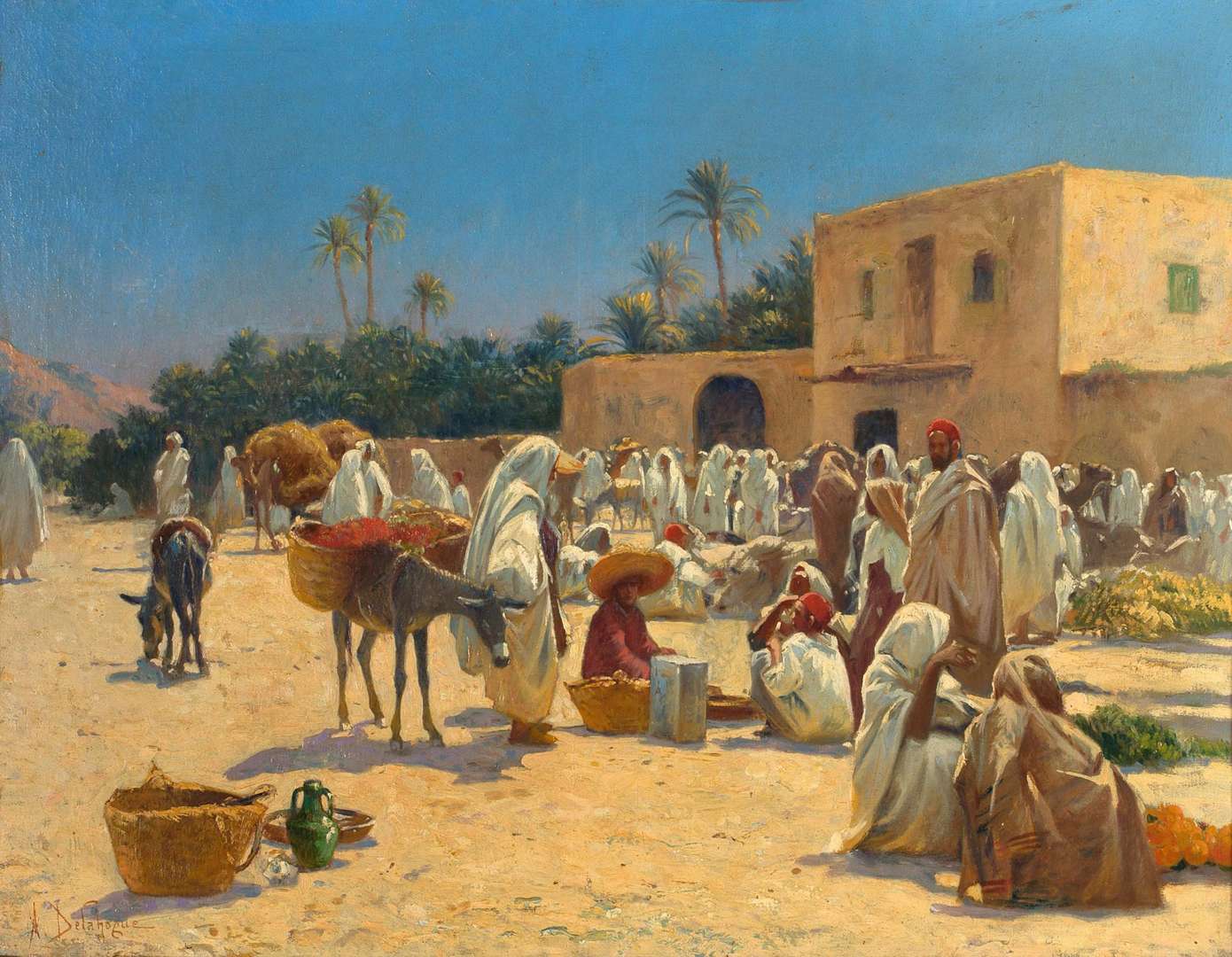 "Cette année encore, MM. Alexis et Eugène Delahogue ont rapporté de leur "campagne" en Tunisie, une centaine de toiles qui prouvent un nouveau progrès dans leur oeuvre si intéressant. Les vastes étendues où se déploie la caravane sur le sable doré, ou le soleil couchant qui rougit les murs des maisons à terrasse, ou la poésie des rives baignées par l'oued ont plutôt retenu M. Eugène Delahogue, tandis que son frère [Alexis] s'attachait à fixer la vie même des Bédouins, les jeux des enfants, les travaux des femmes, le pittoresque des marchés, l'affolante fantasia. Nous ne doutons pas que les frères Delahogue ne s'imposent parmi nos meilleurs orientalistes."