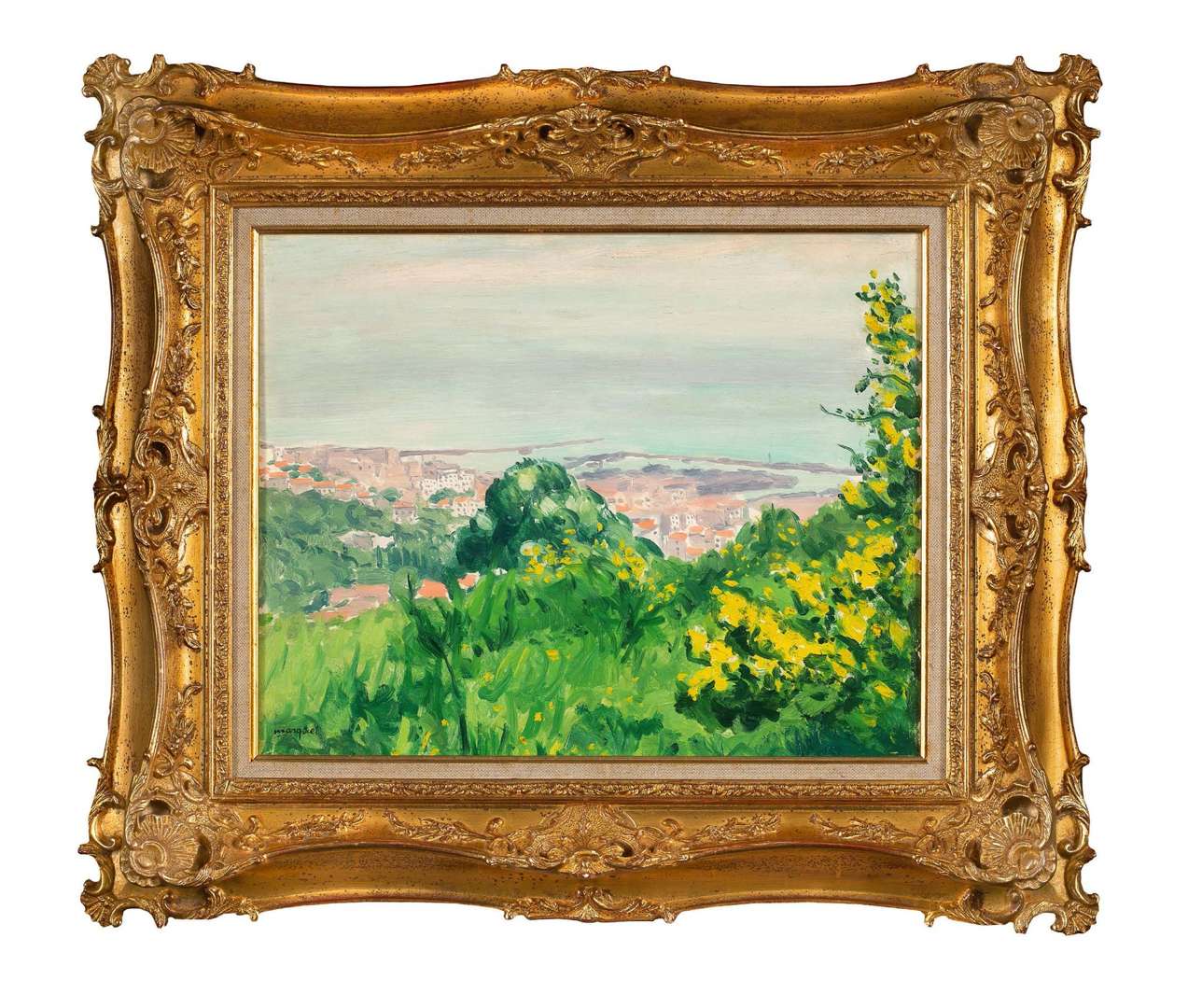 "Au début de 1920, Marquet se rend à Marseille afin d'embarquer pour Alger. Ce premier séjour en Algérie sera un voyage de découverte. L'artiste est conquis par la ville et le Sahara. Il retournera ensuite régulièrement passer l'hiver dans cette contrée ensoleillée. En 1923, il épouse une Algéroise, Marcelle Martinet qui l'entraînera chaque année en Afrique du Nord. Pendant la Seconde Guerre mondiale, ils ne quitteront plus Alger et achèteront une propriété dans les environs. La découverte de la ville par la mer a frappé tous les voyageurs. Orientée face à l'est et bâtie à flanc de montagne, Alger est entourée d'une riche végétation, ses maisons blanches sont couvertes de terrasses. Marquet l'explore à une époque où les constructions commencent à s'édifier, de manière plus intensive, autour de l'enceinte turque. Il reste encore de somptueuses villas mauresques avec leurs merveilleux jardins: les immeubles modernes n'ont pas tout envahi, bien que la ville française ait poussé au gré des nécessités. Les architectes ont construit selon la mode française sans prendre en compte les différences de milieu et de climat. Alger est une grande métropole méditerranéenne et cosmopolite composée : de la Casbah, véritable ville dans la ville, du quartier de Bab-el-Oued totalement original, de ce celui de Mustapha Supérieur qui se couvre d'immeubles modernes et de la ville basse proche du port qui possède tous les aménagements d'une grande cité."