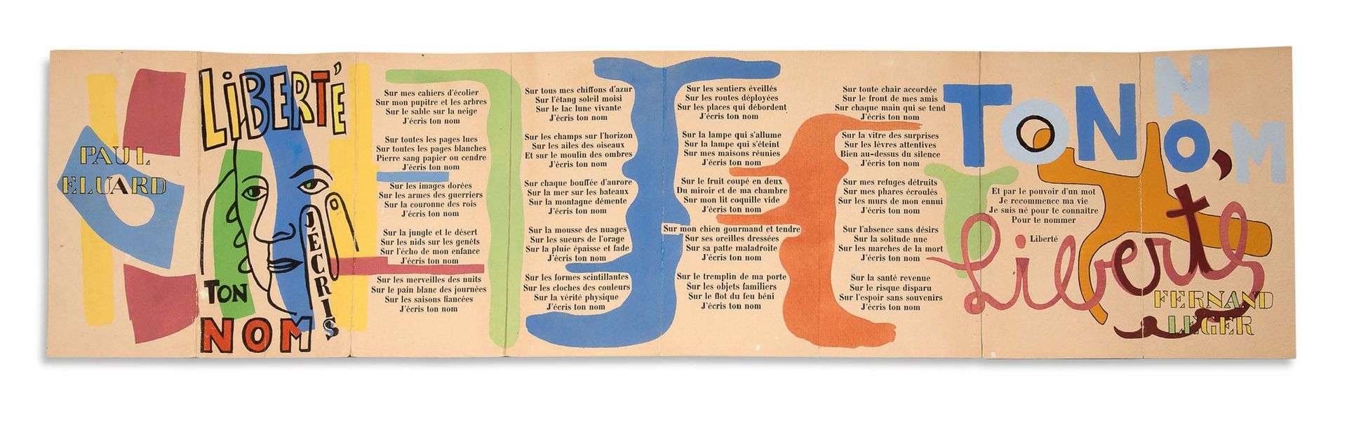 Poème-objet' en accordéon illustrant le poème de Paul Éluard