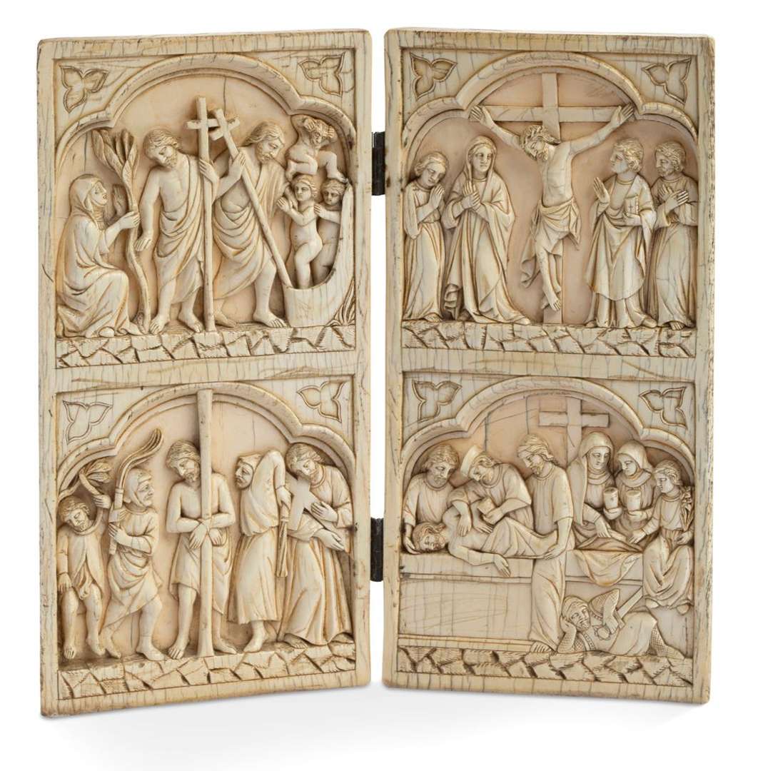 DYPTIQUE en ivoire sculpté présentant des scènes de la vie du Christ : la