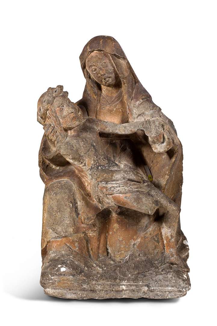 VIERGE DE PITIÉ en pierre calcaire sculptée avec traces de polychromie.Première moitié du XVIe siècle