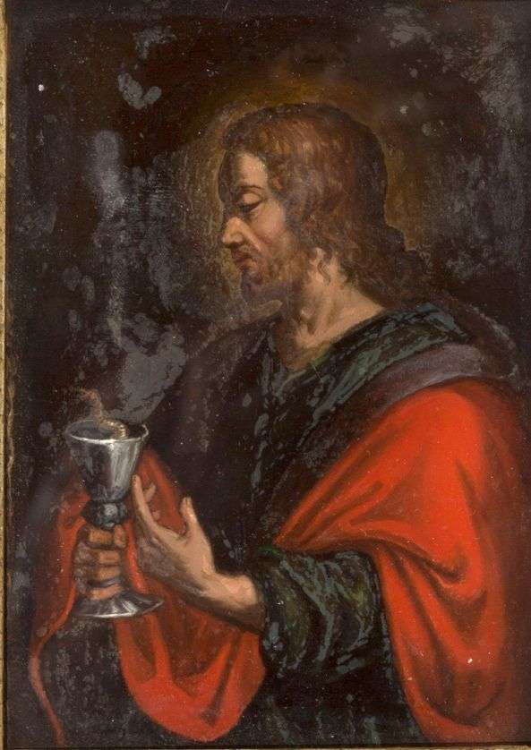 DEUX FIXES SOUS VERRE d'une même série représentant saint Jean et saint Ph