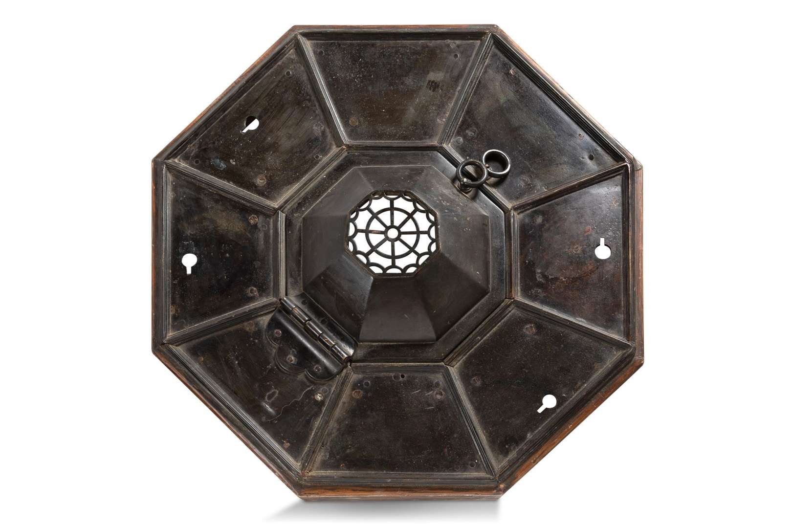 COUVERCLE DE FONTS BAPTISMAUX de forme octogonale en bronze et bois. Espagne ?, XVIIIe siècle