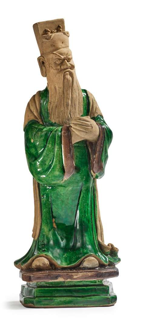 Statuette en biscuit et émaux vert et manganèse, représentant l'Auguste de Jade.