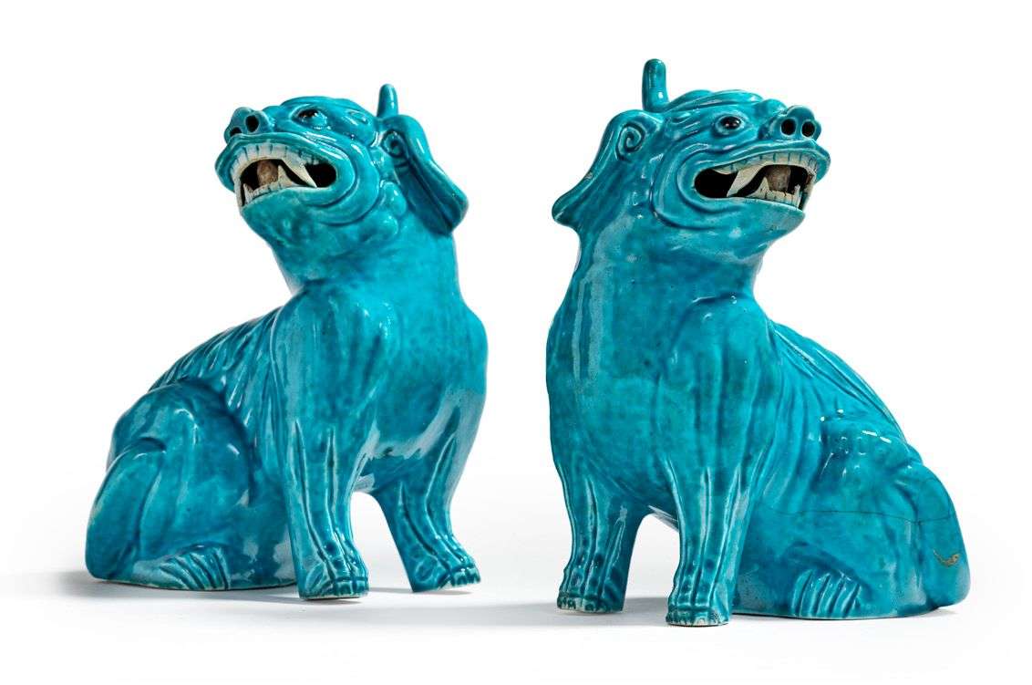 Quatrième ligne mentionnant «1 Paire chimères grès émaillé bleu turquoise et aubergine».
