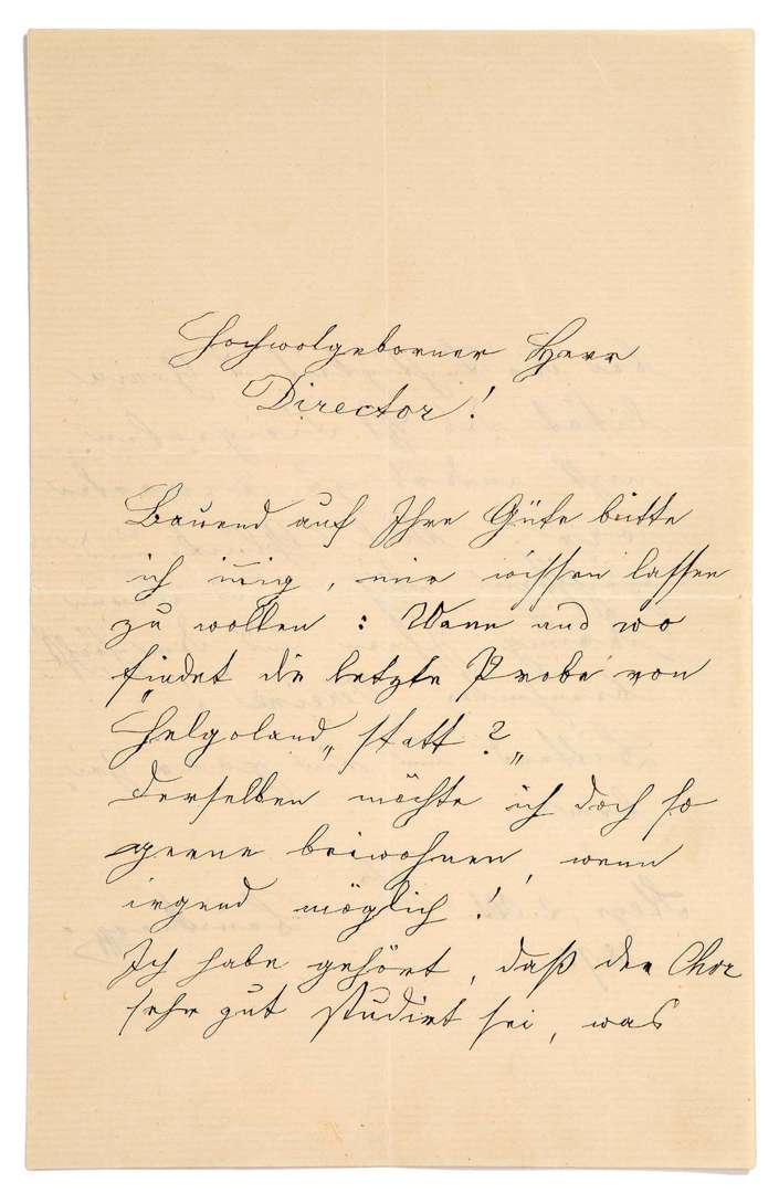 Bruckner demande quand aura lieu la répétition générale : «Wann und wo fi ndet die letzte Probe von Helgoland statt ?» Il aimerait être là, le plus près possible.