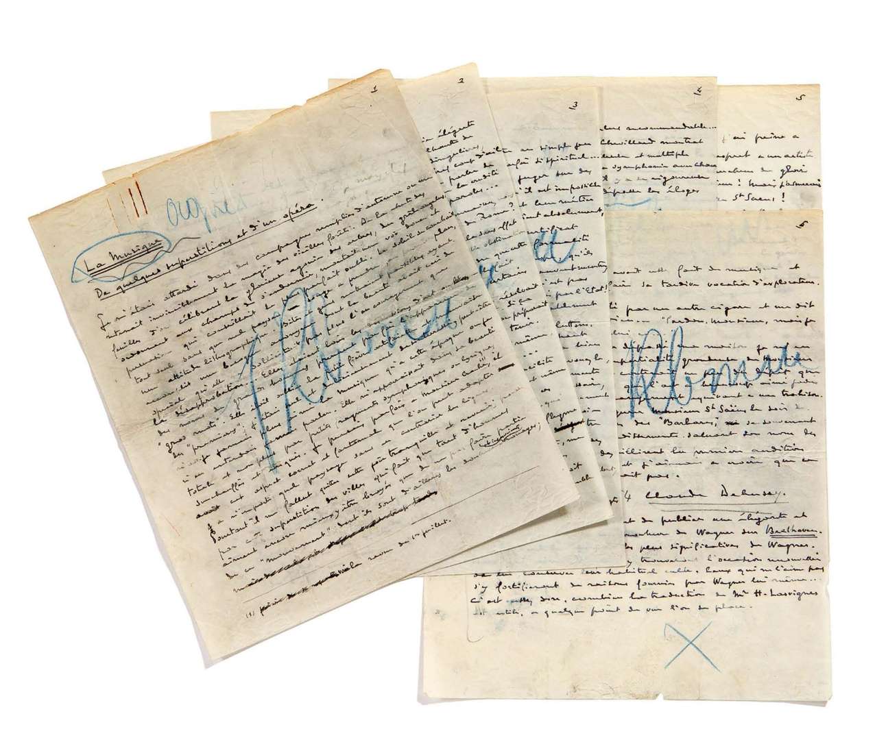 MANUSCRIT autographe signé «Claude Debussy», La Musique.