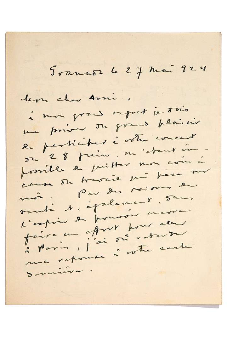 L.A.S., Granada 27 mai 1924, [à Henry PRUNIÈRES] | 3 pages et demie in-8.