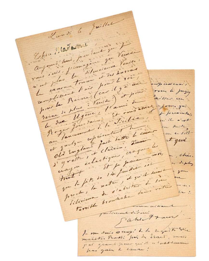 L.A.S., Lundi 6 juillet [1891, à Winnaretta Singer, princesse de SCEY-MONTBÉLIARD, future princesse de POLIGNAC] | 8 pages in-8 (en-tête de la lettre, le mot «Madame» a été ajouté d'une autre main sur le mot «Princesse» eff acé).