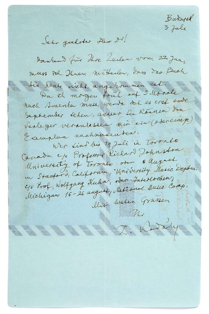 L.A.S., Budapest 3 juillet [1966], au Dr Lutz BESCH à Bremen | ¾ page in-4, adresse au dos | en allemand.