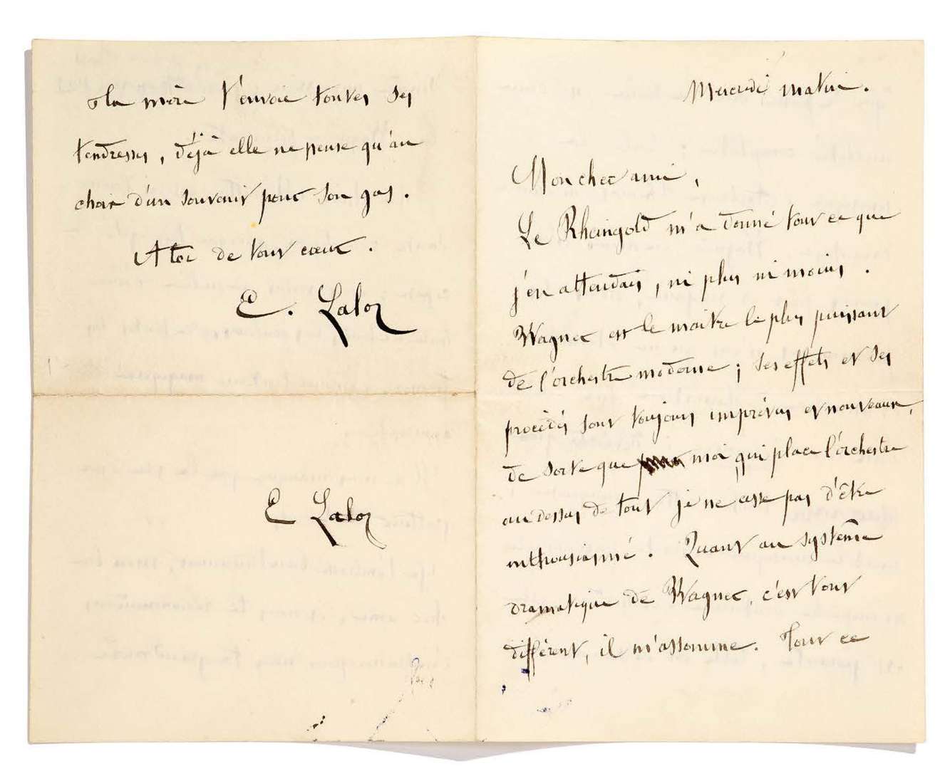 2 L.A.S. «E. Lalo», [Bruxelles janvier 1883], à son fi ls Pierre LALO] | 3 pages et demie et 3 pages in-8.