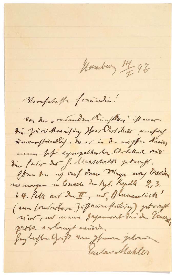 L.A.S. «Gustav Mahler», Hambourg 14 janvier 1897, à une amie | 1 page in-8 | en allemand.