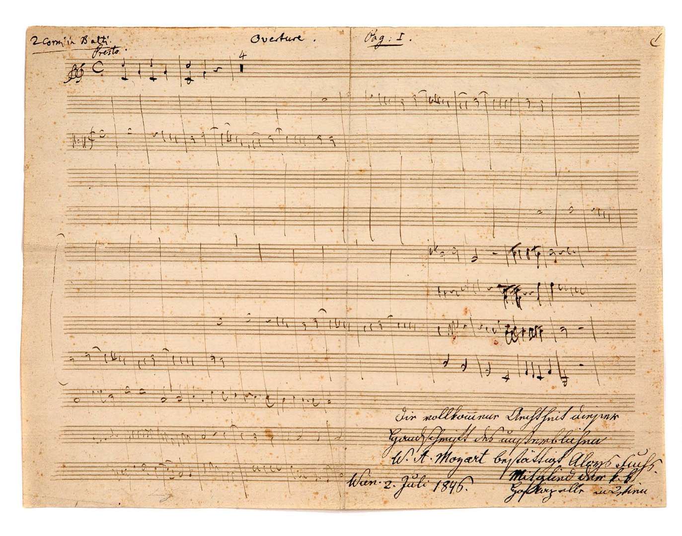 Mitglied der k.k. Hofk apelle in Wien. Wien 2. Juli 1846» | au verso, note autographe de Max BRUCH, confi rmant l'opinion de Fuch : «Ich schließe mich der Ansicht des Herrn Aloys Fuchs unbedingt an. Max Bruch. Coblenz, 23. Novbr. 83». Alfred Einstein avait recensé (Köchel 3) le manuscrit en 1935 dans la collection du musicologue Jacques-Gabriel Prod'homme (1871-1956), Il disparut ensuite jusqu'à sa réapparition en vente en 2011.