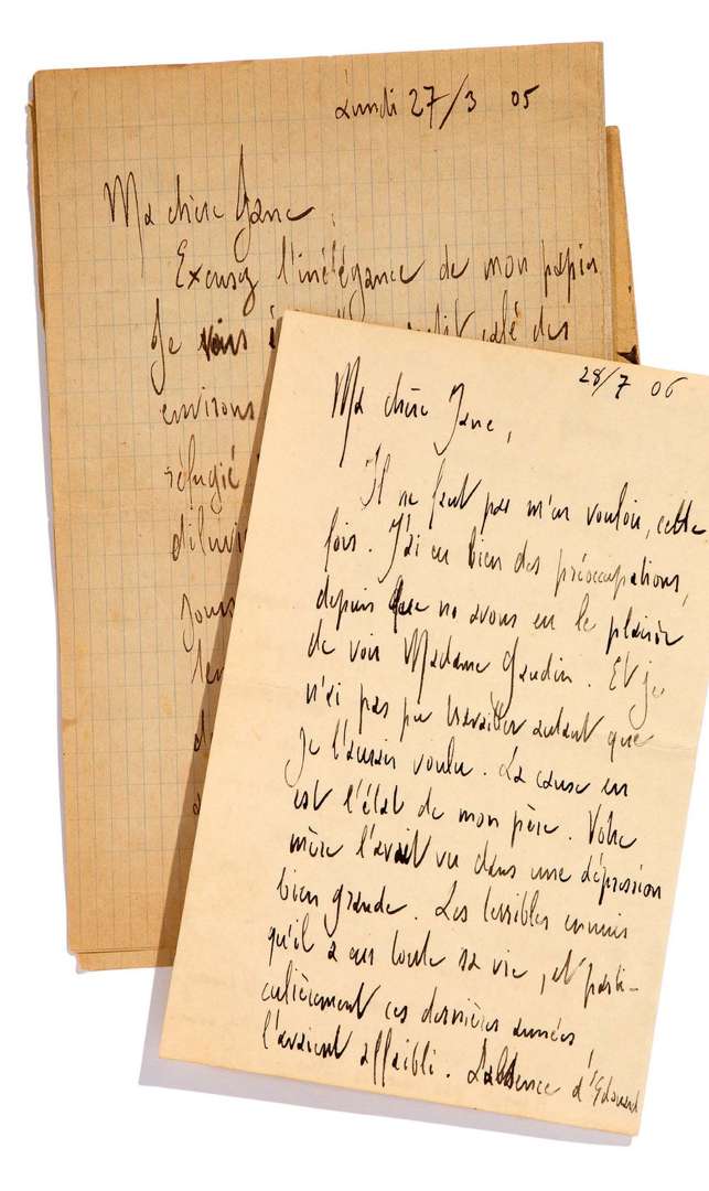 2 L.A.S., 1905-1906, à Jane GAUDIN | 6 et 4 pages in-8, enveloppes.