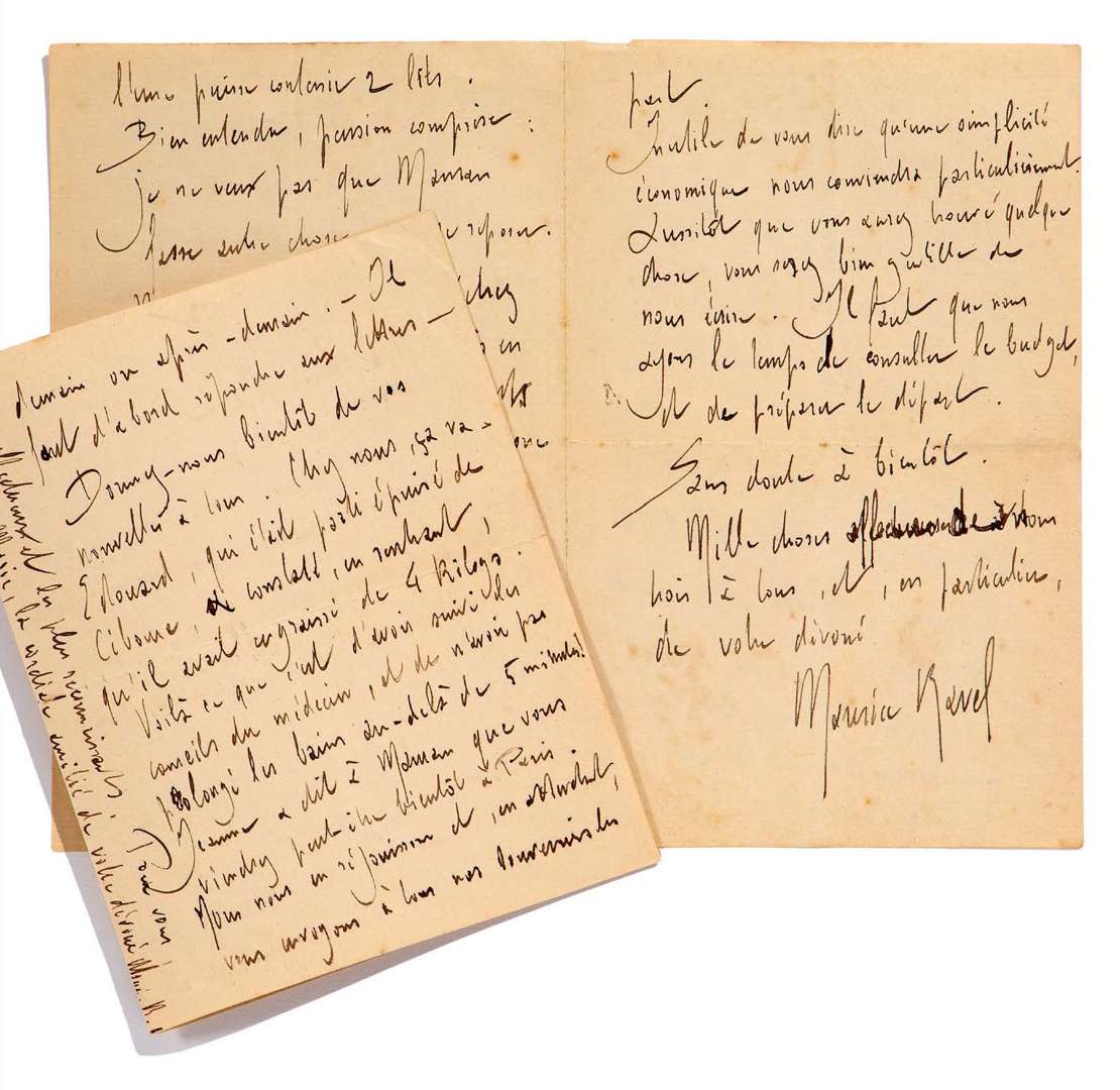 2 L.A.S. «Maurice Ravel», juin-novembre 1911, à Marie GAUDIN | 4 pages in-12 et 4 pages in-8.