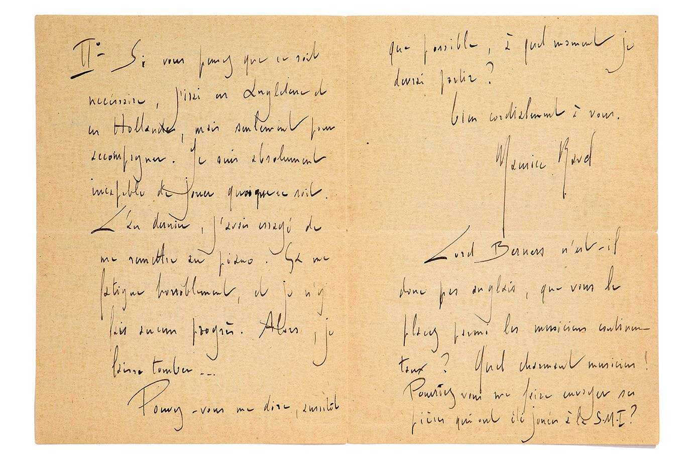 Il refuse le projet de L'Heure fantasque pour se consacrer à L'Enfant et les sortilèges : «Ne comptez pas sur moi comme collaborateur: je recommence à peine à travailler - que c'est difficile de s'y remettre ! -, j'ai pour 4 ans de boulot, et il faut que ce soit prêt dans un an !» Il veut bien aller en Angleterre et en Hollande, «mais seulement pour accompagner. Je suis absolument incapable de jouer quoi que ce soit. L'an dernier, j'avais essayé de me remettre au piano. Ça me fatigue horriblement, et je n'y fais aucun progrès. Alors, je laisse tomber»...