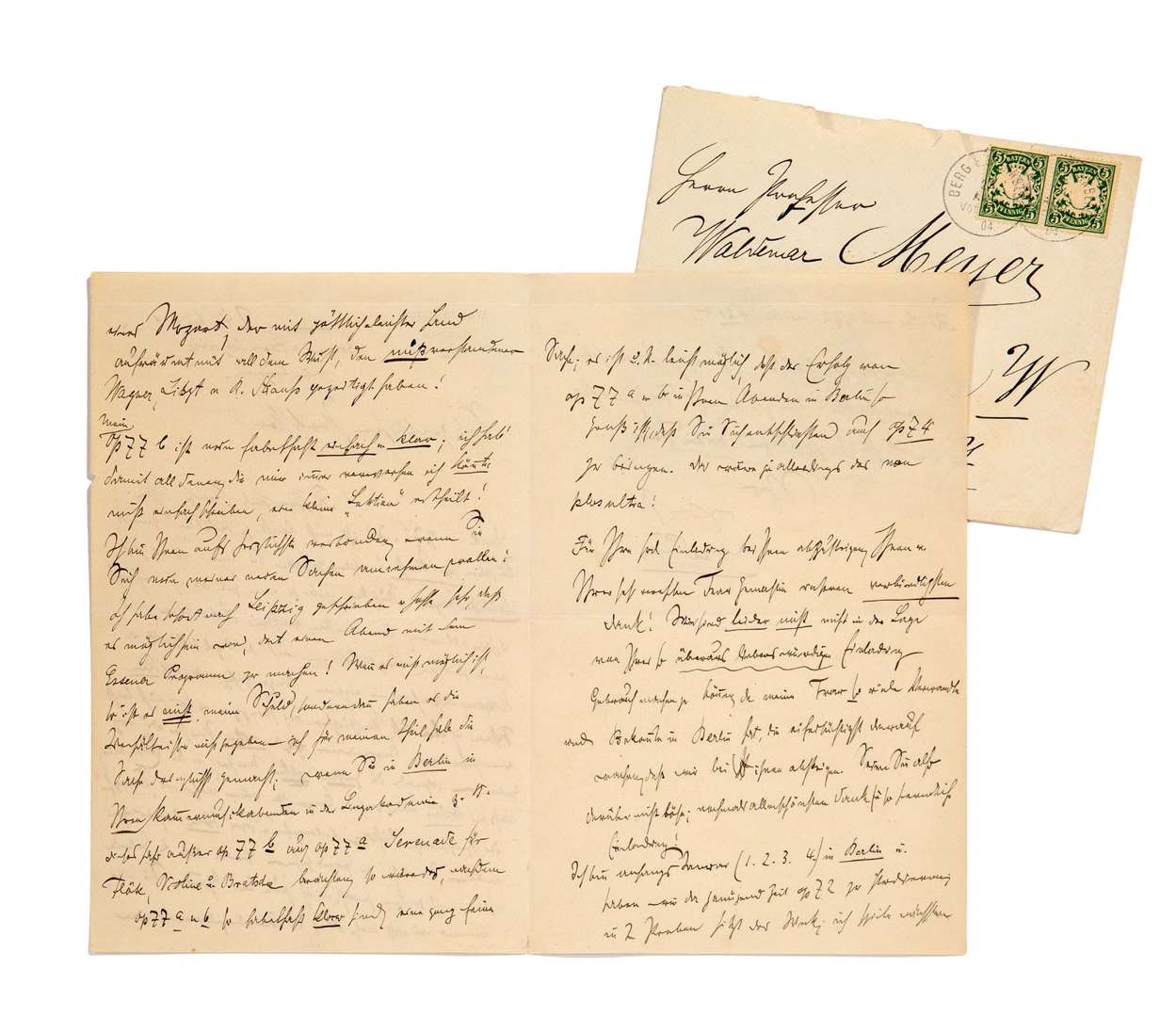 L.A.S. «Max Reger», Berg am Starnberger See 24 août 1904, au Prof. Waldemar MEYER à Berlin | 3 pages et demie in-8 à son en-tête, enveloppe | en allemand.