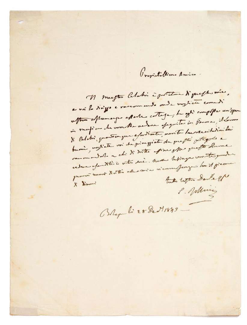 L.A.S. «G. Rossini», Bologne 28 décembre 1843, à un ami | ¾ pages in-4 | en italien.