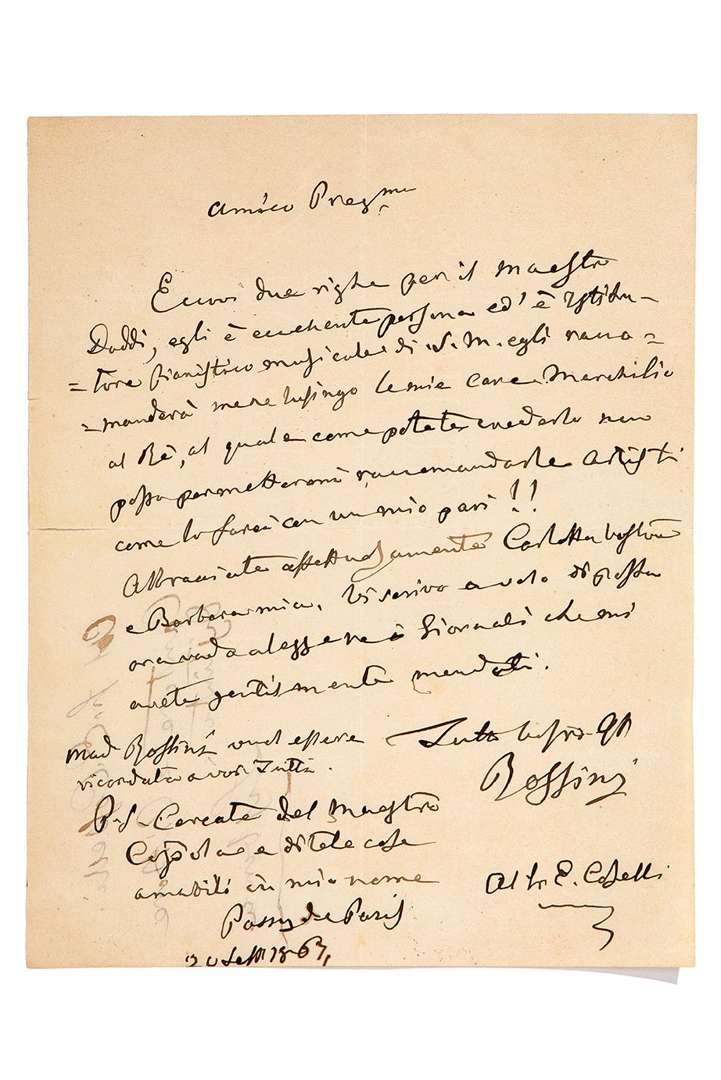 L.A.S. «Rossini», Passy de Paris 30 septembre 1867, à Eugenio
