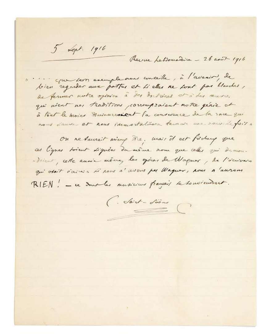 L.A.S. «C. Saint-Saëns», 12 novembre 1921, à un ami critique musical | 1 page et demie in-4.