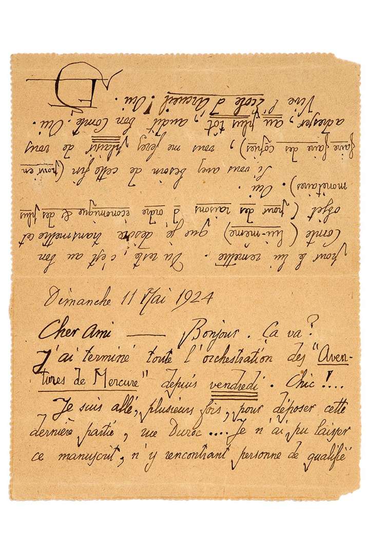 L.A.S., 11 mai 1924, à Roger DÉSORMIÈRE | 1 page in-12, adresse au verso (carte-lettre).