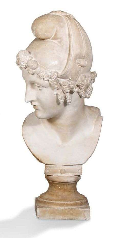 Buste d'Attis ou Atys portant le bonnet phrygien, sur un piédouche circulaire à doucine. Probablement XIXe siècle.