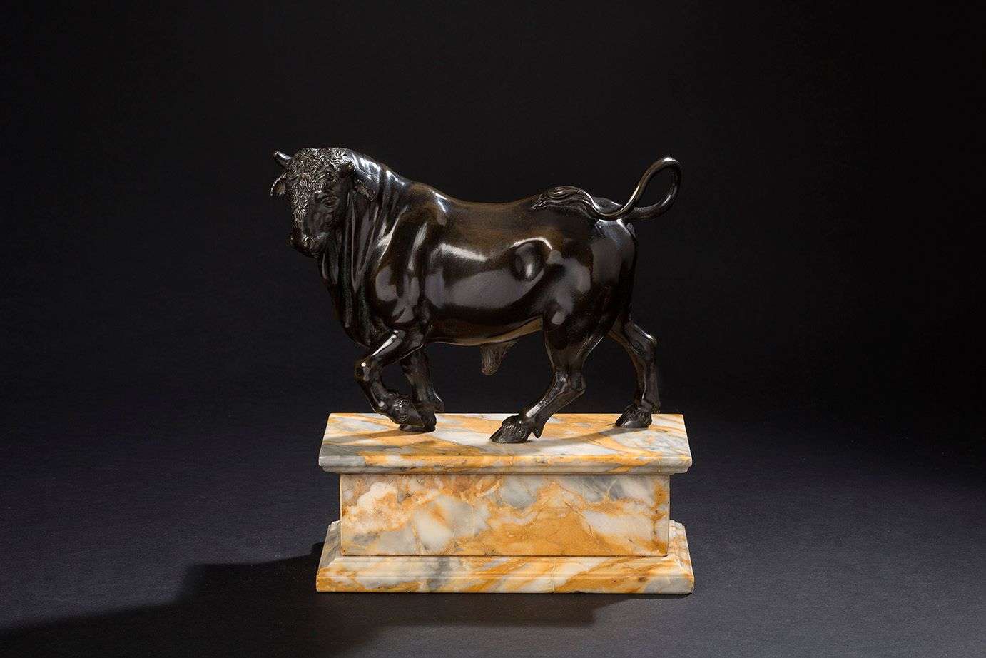 TAUREAU Bronze à patine brune sur un socle en marbre.France, XVIIIe siècle.