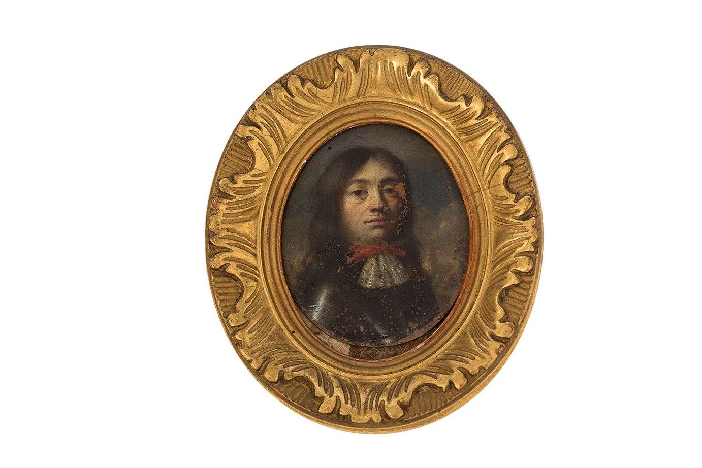 Hauteur : 5,9 cm - Largeur : 4,8 cm (Petits manques visibles) Dans des cadres ovales de bois doré.