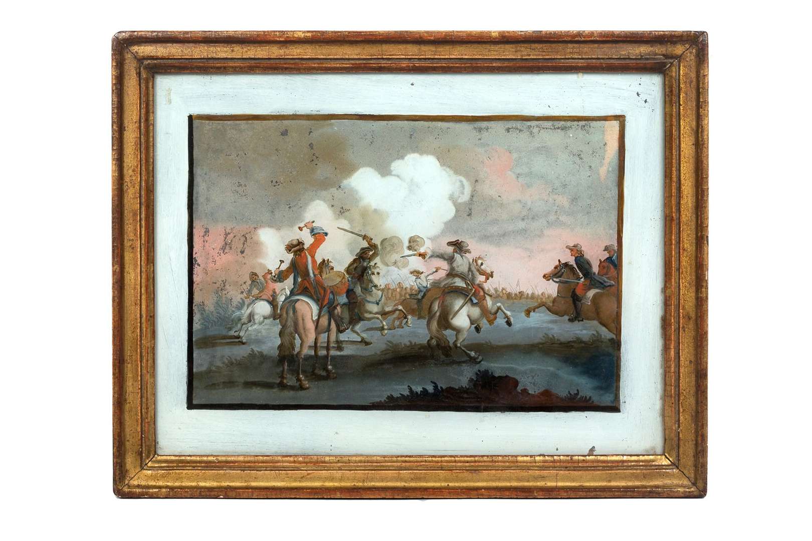 FIXE SOUS VERRE représentant une bataille de cavalerie.Travail étranger, XVIIe siècle.