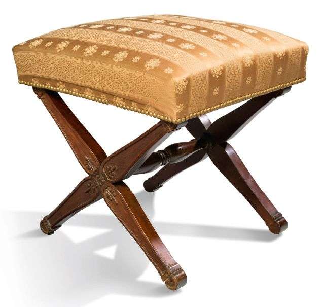 TABOURET en forme de ployant en acajou sculpté à décor de palmettes en éto