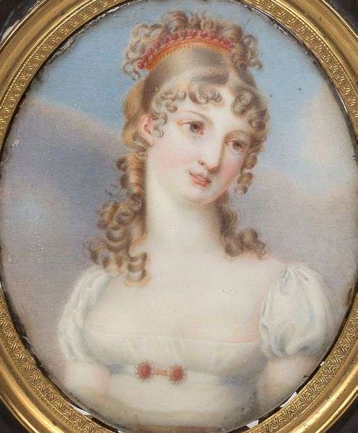 PORTRAIT MINIATURE ovale représentant une jeune femme blonde de trois-quar