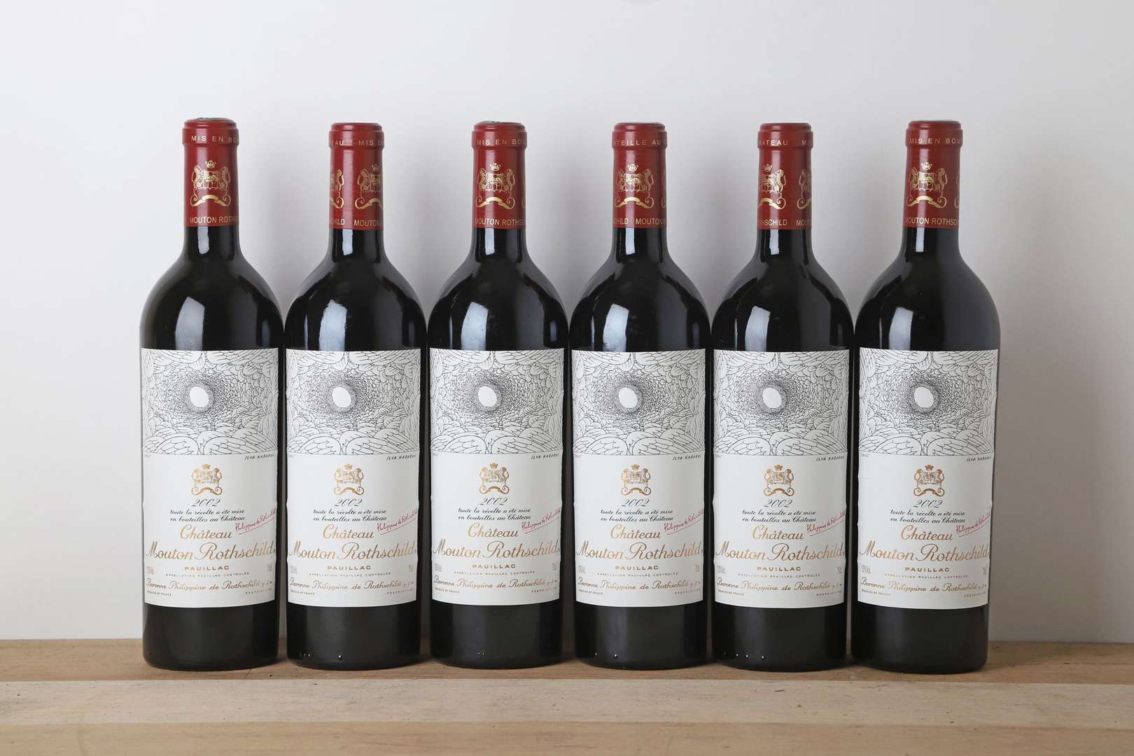 6 B CHÂTEAU MOUTON ROTHSCHILD (Caisse Bois d'origine avec inscritions manuscrites sur un côté) - 2002 - GCC1 Pauillac