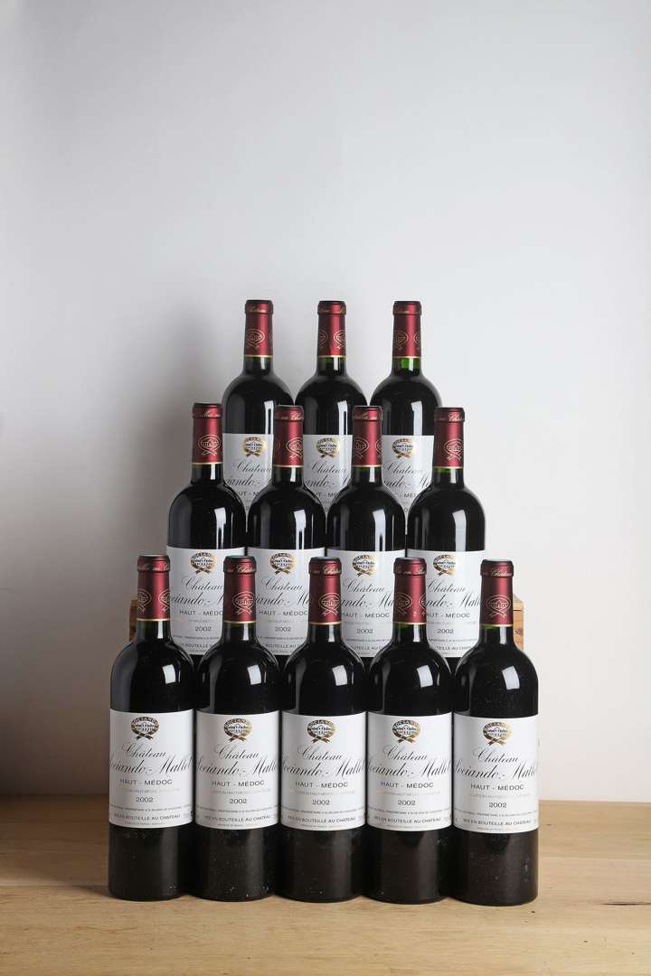 12 B CHÂTEAU SOCIANDO-MALLET (Caisse Bois d'origine) - 2002 - Haut-Médoc