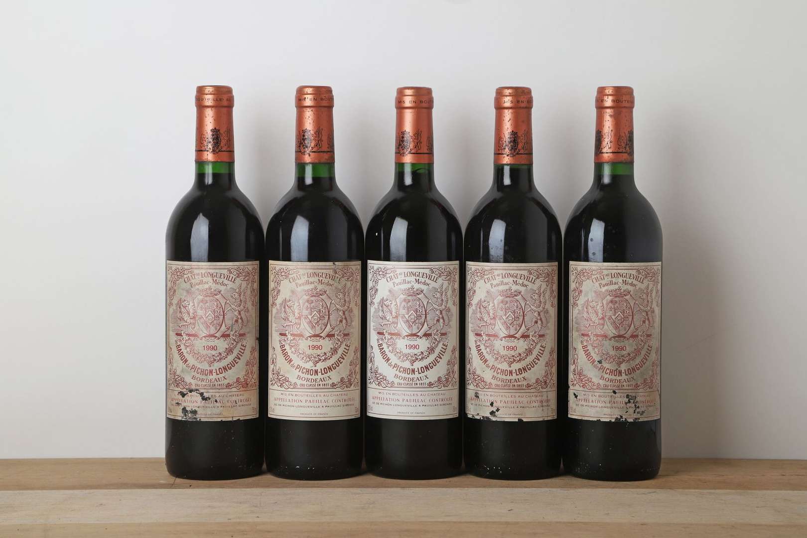 5 B CHÂTEAU PICHON LONGUEVILLE BARON (e.t. dont 3 e.t.a| quelques marques capsules) - 1990 - GCC2 Pauillac