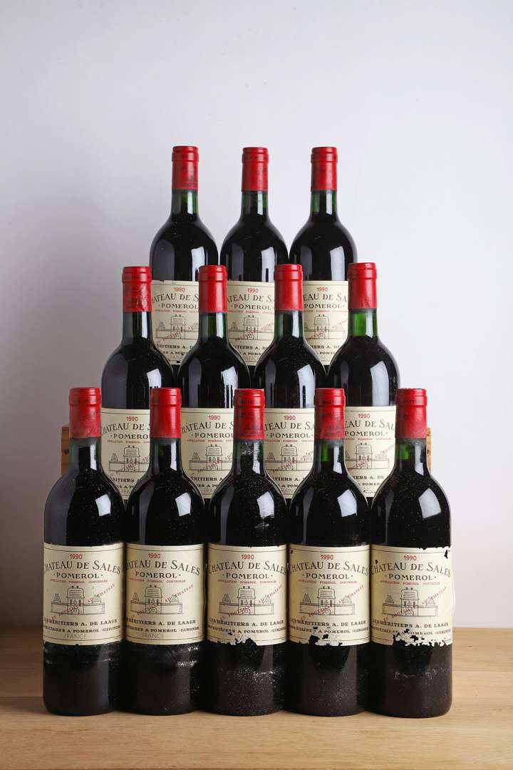 12 B CHÂTEAU DE SALES (Caisse Bois d'origine) (2 B.G| 2 e.l.a| 4 e.t.a.) - 1990 - Pomerol