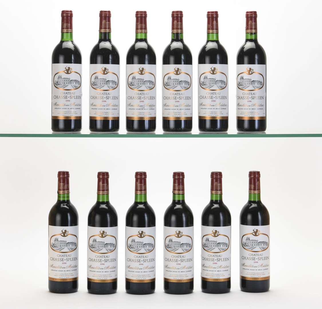 12 B CHÂTEAU CHASSE-SPLEEN (Caisse Bois d'origine) (1 B.G| 5 bas de capsules abimées) - 1990 - Moulis