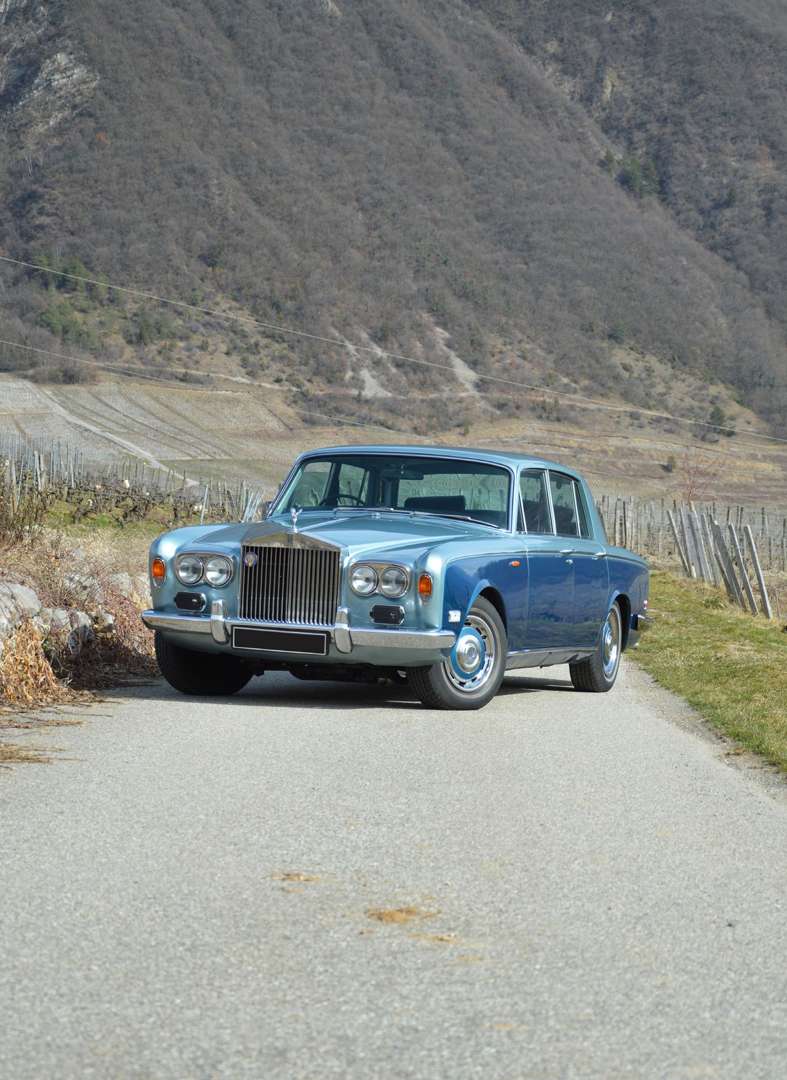 Vaisseau amiral de Rolls-Royce, la Silver Shadow est présentée en 1965 au Salon de Londres après dix années de conception et de mise au point. Elle allie finesse, charme et confort comme aucune autre voiture ne l’a fait à cette époque. Sa production constitue une révolution historique pour la marque britannique puisqu’elle est la première Rolls pensée pour être conduite par son propriétaire et non par un chauffeur. La nouvelle berline de série conserve le moteur et la boîte Hydramatic des dernières Silver Cloud, mais bénéficie désormais d’une monocoque avec suspensions arrière et ressorts hélicoïdaux, et se trouve désormais équipée d’un freinage assisté à disques aux 4 roues. Elle rencontre un succès commercial imprévisible jusqu’en 1976 avec près de 20 000 exemplaires écoulés toutes versions confondues. Malgré tout, en 1977 le constructeur anglais doit faire face à la concurrence et décide alors d’effectuer un lifting symbolique à sa Silver Shadow en attendant l’arrivée de la Silver Spirit en 1980. Avec ce modèle, Rolls-Royce est délibérément sorti de sa zone de confort, en abandonnant les formes nobles et très britanniques de la Silver Cloud. La Silver Shadow a contribué à faire entrer Rolls-Royce dans l’ère moderne de l’automobile. Le modèle que nous présentons a été mis en circulation en 1973 en Angleterre. Il fut en première main la propriété du footballeur anglais Thomas Smith qui passa la majeure partie de sa carrière à Liverpool au poste de défenseur. La voiture a ensuite appartenu à un diplomate anglais basé à Monaco avant de rejoindre la Savoie en 2015. Notre exemplaire se présente dans sa configuration d’origine avec une élégante teinte bicolore Silver mink et Peacock blue. A l’intérieur on retrouve une sellerie en cuir Dark blue associée à des moquettes bleues. L’actuel propriétaire en fait l’acquisition en 2017 et engagera de nombreux frais afin de fiabiliser la belle anglaise. Les travaux ont été effectués par le garage Prestige Automotiv spécialisé dans la restauration des Rolls-Royce. Ainsi l’ensemble moteur boite a été déposé pour permettre le remplacement de tous les joints, le système de suspension a été entièrement revu et de nombreuses pièces périphériques ont été remplacées. A l’intérieur, les cuirs ont été restaurés et les boiseries ont été revernies. Cette auto se trouve aujourd’hui dans un bel état général, seules quelques traces de corrosion sont à signaler. Chose rare, on notera la présence de son carnet qui témoigne d’un entretien régulier effectué uniquement auprès de spécialistes. Il permet également de certifier son kilométrage de 90 700 miles. Avec sa mécanique fiabilisée et sa configuration élégante, notre belle Silver Shadow saura séduire les collectionneurs en quête de luxe et de confort.