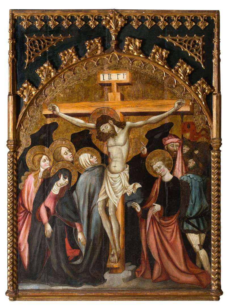 Au XIV e siècle, la peinture aragonaise est fortement influencée par l’art italien. Après la dernière vague de byzantinisme en Italie, le récit de Giotto, composé de figures en interaction, vise une fiction picturale plus déli - bérée de la réalité visible dans une composition harmonieuse, animée par les contrastes et la variété. Depuis le XII e siècle, la Catalogne est unie à l’Aragon, mais elle ne rejoint l’Espagne et ses rois catholiques qu’à la fin du XV e siècle. Dès le début du XIV e siècle, les terres de la couronne d’Aragon ont adopté le style italien avec des éléments du style franco-flamand de la peinture du gothique international et de son maniérisme linéaire. À partir des années 1340, les modèles picturaux toscans influencent les artistes de Majorque, d’Aragon et de Catalogne, dont ses principales figures, Ferrer Bassa (actif vers 1320 - 1350) et son fils Arnau. Son Livre d’heures enluminé de Marie de Navarre, réalisé avec la collaboration de son atelier laisse appa - raître une nette distinction de qualité entre les enluminures autographes et celles réalisées par ses assistants. Juan de Levi et Bonanat Zaortiga sont d’autres artistes influents en Aragon. Dans la seconde moitié du XIV e siècle, le mécénat local des élites civiles et religieuses se tourne principalement vers les ateliers de Barcelone. Des modèles iconographiques standards, adaptés par chaque artiste s’y développent dans les ateliers des frères Serra: Francesco, Jaume, Pere et Joan. Ils créent un nouveau paradigme pictural, incor - porant certains éléments de la peinture gothique internationale de la région située entre Paris et la Meuse, en Catalogne, en Aragon, à Valence et dans les îles de la couronne catalano-aragonaise. Au début du XV e siècle, la peinture catalane mêlant idéalisation et réalisme, avait acquis une idiosyncrasie locale identifiable en naturalisant des éléments franco-flamands dans des prototypes italiens. Ainsi, la présence sur place de peintres florentins tels que Gherardo di Jacopo, dit Starnina (vers 1360 - 1413), mêlant beauté idéale et difformité caricaturale, a fortement influencé la production artistique locale. L’échange de cadeaux entre les princes catalans-aragonais et les rois valoisiens, les artistes et prélats italiens, allemands, français et allemands itinérants, ont joué un rôle décisif dans la réception des modèles de retables picturaux franco-flamands et la manière dont ils se superposent au substrat stylistique italien dans les terres de la Couronne d’Aragon. (Voir suite dans le catalogue)