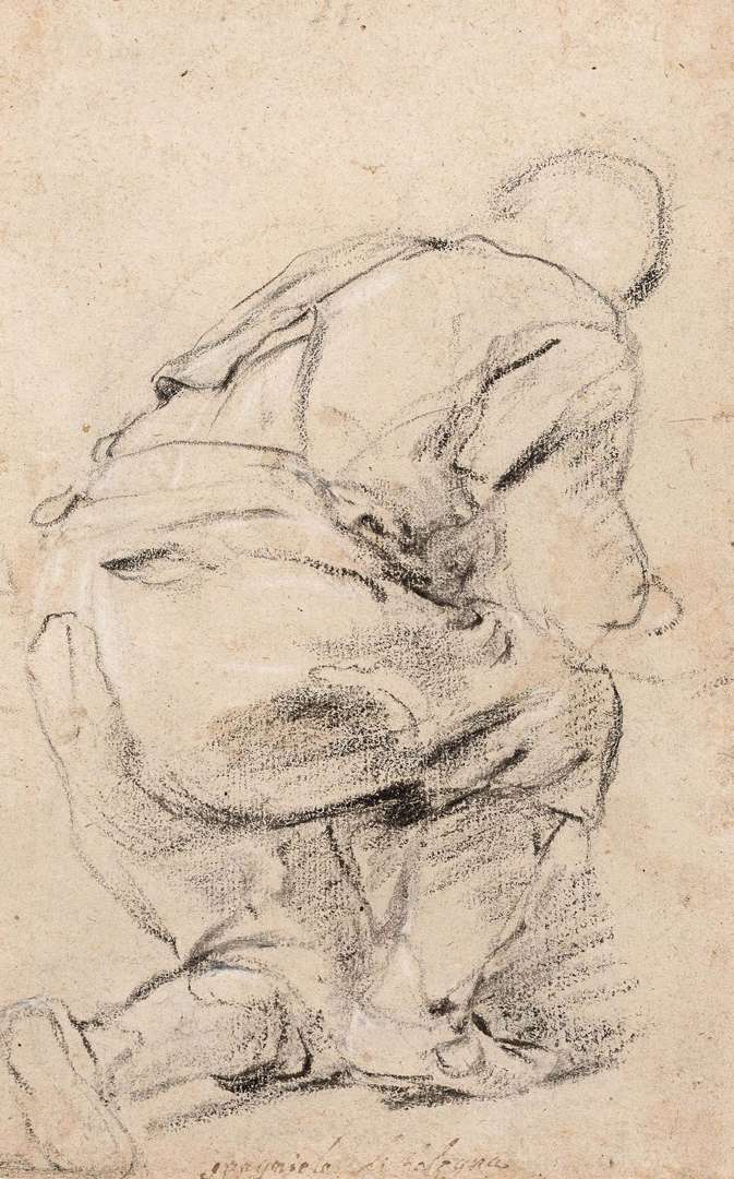 Escalante est né à Cordoue en 1633 où il suit une première formation, probablement dans l’atelier d’Antonio del Castillo. À la fin des années 1640, il s’installe à Madrid et entre dans l’atelier de Francisco Rizi. Grâce à son association avec Ricci (1614 - 1685) et sa propre présence à la cour, l’artiste découvre le travail des peintres vénitiens, en particulier du Tintoret (1518 -1594) et Véronèse (1528 -1588) qu’il admirait beaucoup et auxquels il emprunte un style de composition et des poses gracieuses. En plus de ces influences, il utilise des estampes flamandes, en copie cer - taines qu’il reprend presque à l’identique, tout en s’inspirant dans le même temps des modèles élégants d’Alonso Cano (1601 - 1667). Escalante est un artiste extrêmement doué, qui se révèle être aussi un dessinateur accompli et un coloriste remarquable dans ses peintures. Bien que sa car - rière ait été écourtée lorsqu’il meurt des suites de la tuberculose en 1669 à l’âge de trente-six ans, il a laissé un corpus d’œuvres très imaginatives et dynamiques, témoignant de son grand potentiel. Cette décennie des années 1660 voit d’ailleurs la disparition d’un certain nombre de jeunes artistes qui auraient non seulement été les successeurs de grands maîtres tels que Diego Velázquez (1599 - 1660) et Alonso Cano, mais auraient également constitué la génération des dernières années du Siècle d’or. Parmi ces personnages exceptionnellement talentueux et prometteurs figurent Mateo Cerezo (1637 - 1666) et Juan Antonio de Frías y Escalante. La première œuvre connue d’Escalante est un Épisode de la vie de saint Gérard peint pour le monastère des Déchaussées royales de Madrid, aujourd’hui perdu. Cette œuvre lui vaut une certaine renommée et il reçoit de nombreuses commandes d’églises et d’institutions religieuses de Madrid. En 1667, on lui confie l’exécution de dix-sept tableaux pour la sacristie du monastère des Déchaussées royales (Museo del Prado). C’est peu de temps après avoir commencé à travailler avec Ricci sur des peintures pour la cathédrale de Tolède, qu’Escalante succombe à la tuberculose. Palomino décrit Escalante comme « un fin dessinateur » qui, dans certaines de ses compositions, a utilisé des estampes, s’est inspiré des œuvres du Tintoret et de Véronèse, comme précedemment évoqué. Il adopte leur raffinement et l’élégance des compositions et des personnages. Ces caractéristiques sont visibles dans la série peinte pour la sacristie du couvent de la Merced Calzada à Madrid entre 1667 et 1668. Dix-sept toiles représentant des thèmes de l’Ancien Testament liés à la préfiguration du Mystère de l’Eucharistie. Son coup de pinceau léger, délicat, presque transparent, ses compositions horizontales, théâtrales avec un point de vue bas, indiquent qu’il avait connaissance des œuvres de Rubens (1577 - 1640), des gravures d’après lui et du Titien. Le tout au prisme de l’élégant classicisme de Cano, tout en retenue, en mesure et en équilibre. Un dessin au sujet similaire, considéré comme une étude préparatoire à une Adoration des bergers de la collection Emilio Santarelli (L. 907) a été publié par Olitsky dans Disegni Spagnoli, comme Juan Antonio Escalante nr127, p. 113, ill 101. Voir aussi Cat. Santarelli 1870, p. 695 n°1 | Mayer 1915, n°103 | Sanchez Canton 1930,V, n°229.