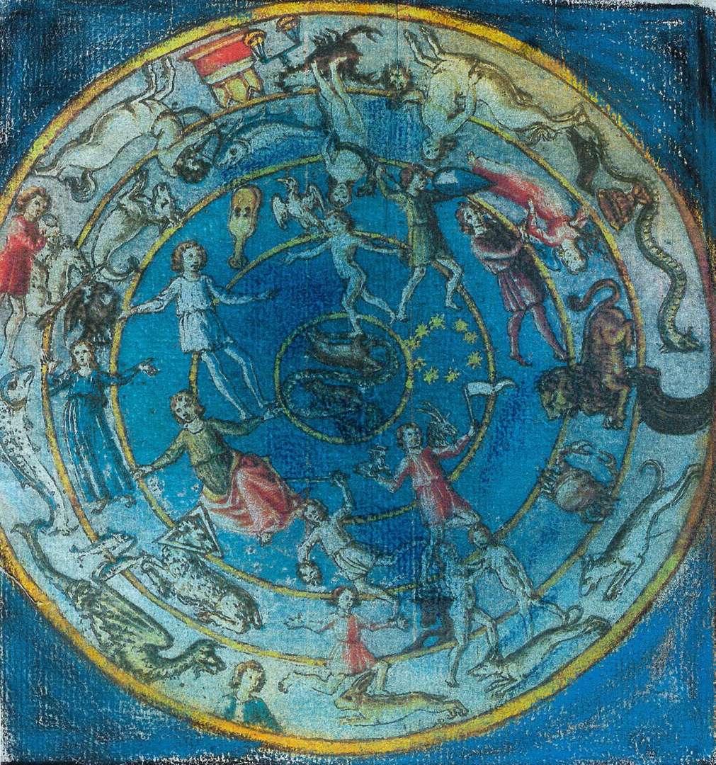 Un zodiaque italien de la deuxième moitié du XVe siècle similaire est publié par Marie-Louise von Franz en 1978 dans Time Rhythm and Repose Paperback - October 1, 1978 (Fig. 1).