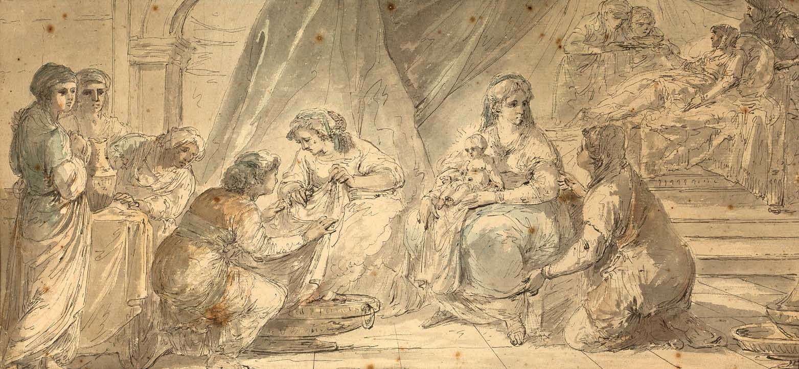 Plume et encre noire sur papier, lavis de gris, de brun et de bleu 18,9 x 41,4 cm (chaque)