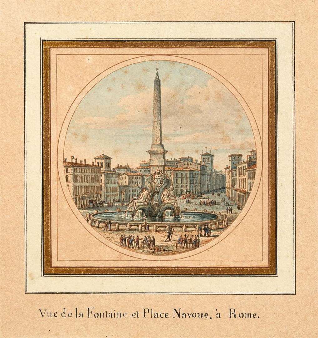 Localisée sur le montage dans le bas Vue de la Fontaine et Place Navone, à Rome 8,5 x 8,5 cm