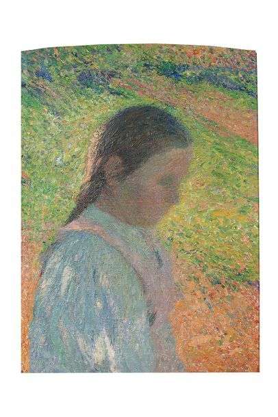 Henri Martin depicted the female figure frequently from every aspect, whether in genre scenes or more dream-like landscapes. Whatever their age, whether women or children, they often have the same pensive gaze. Here the artist does not detail the young girl's features, but lingers on her meditative posture. A viewpoint set slightly above the subject, whose partly shadowed face is seen against the light, makes viewers feel they are being drawn into the inner world of the model's thoughts